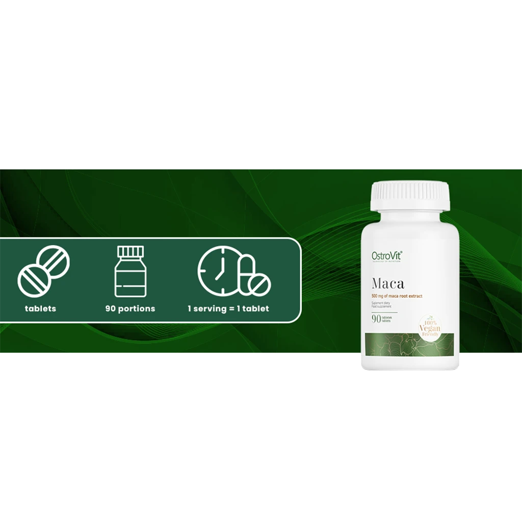 De OstroVit Maca VEGE 90 tabletten bieden een hoogwaardig macawortelextract (DER 10:1),afkomstig uit de bergachtige regio’s van Peru. Deze zorgvuldig samengestelde formule is verpakt in gemakkelijk te slikken tabletten, elk met 500 mg macawortel extract.