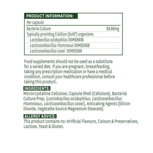 Natures Aid Acidophilus 5 billion bevat een krachtige mix van verschillende bacteriestammen waaronder Lactobacillus acidophilus, Lactobacillus rhamnosus en Lactobacillus casei. Deze stammen zijn bekend om hun traditioneel gebruik in het ondersteunen van een gezonde darmflora.