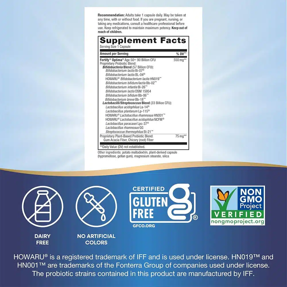 Dit probioticum bevat een krachtige mix van nuttige bacteriën, waaronder 90 miljard CFU, ontworpen om de spijsvertering te ondersteunen en het welzijn van de darmflora te bevorderen. Ideal voor mensen van 50 jaar en ouder die hun dagelijkse probiotica-inname willen aanvullen.