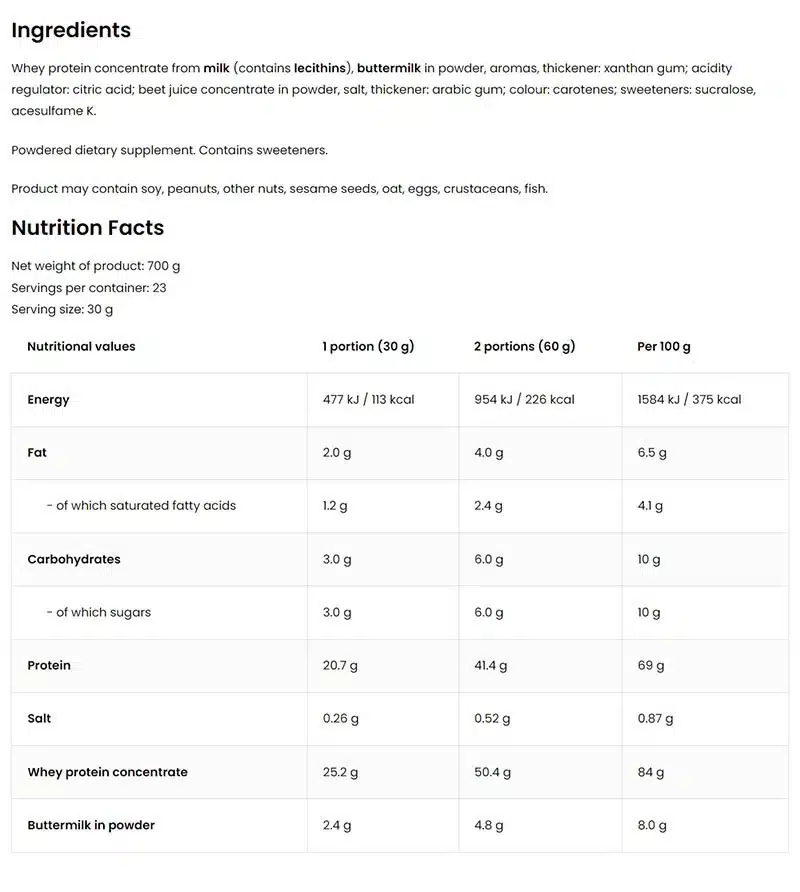 Ontdek de heerlijke smaak van Ostrovit WHEYlicious in de variant Creamy Peach. Dit hoogwaardige whey proteïne poeder is niet alleen een genot voor je smaakpapillen,maar ook een uitstekende aanvulling op je dagelijkse voeding,vooral voor sporters en actieve mensen die hun eiwitinname willen verhogen.