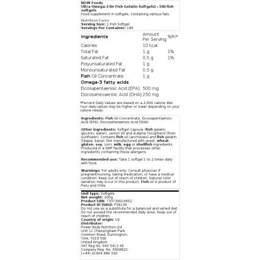NOW Foods – Ultra Omega-3 is een hoogwaardig supplement in de vorm van zachte gelatinecapsules, gemaakt van visgelatine. Deze softgels zijn ontworpen om op een gemakkelijke manier deel uit te maken van uw dagelijkse routine.